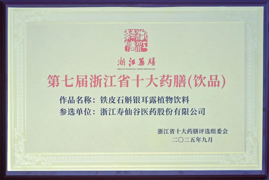 日前,2025浙江省中药材博览会暨第十八届磐安中药材博览会在磐安举行,现场公布了第七届“浙江省十大药膳”评选结果,寿仙谷(603896)公司研发的“石斛荔枝药膳鸡(菜肴)”与“铁皮石斛银耳露植物饮料(饮品)”从百余款参评作品中脱颖而出,双双入选“浙江省十大药膳”。
