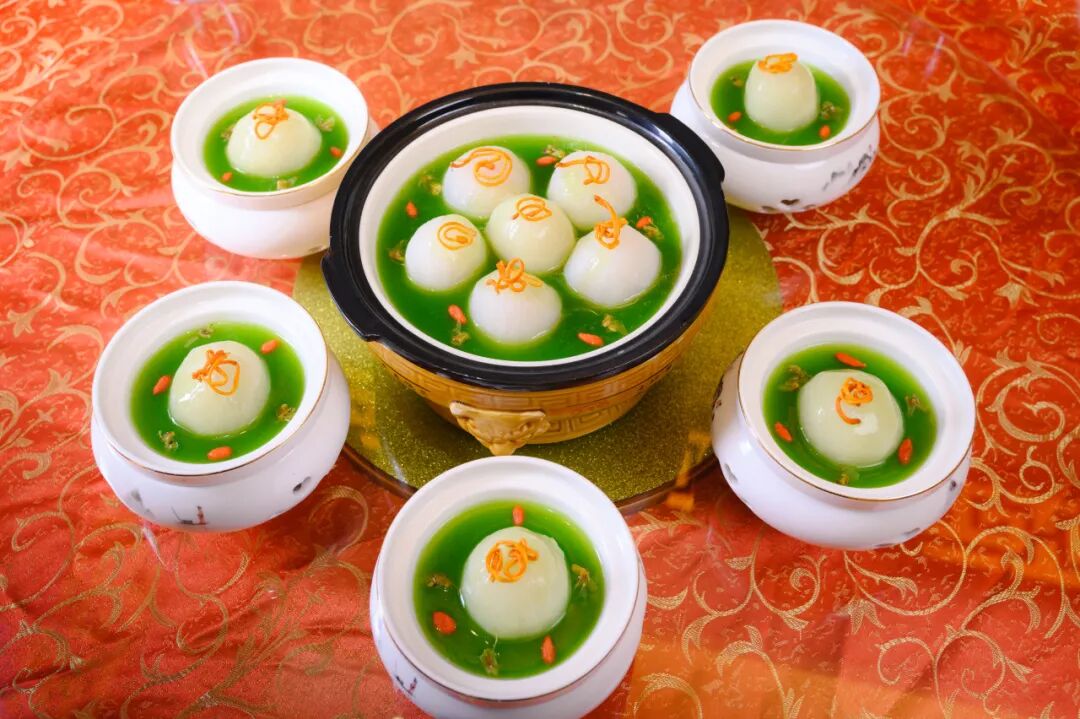 金华府武义县民间药医李金祖于清宣统元年(1909年)创办 “寿仙谷药号”,诊脉看病之时,常会为不喜吃“苦药”的病人开一些“膳食方”治病和养生保健。这味“仙汁白玉狮子头”,取用白萝卜的消食化滞,铁皮石斛的滋阴清热、润肺益肾,猪肉的补肾养血、滋阴润燥的药食之效,再加上鸡汤、杏鲍菇、虫草花、枸杞等补益作用,令大家大快朵颐,维护身体安康。