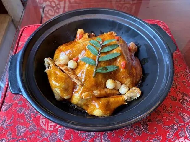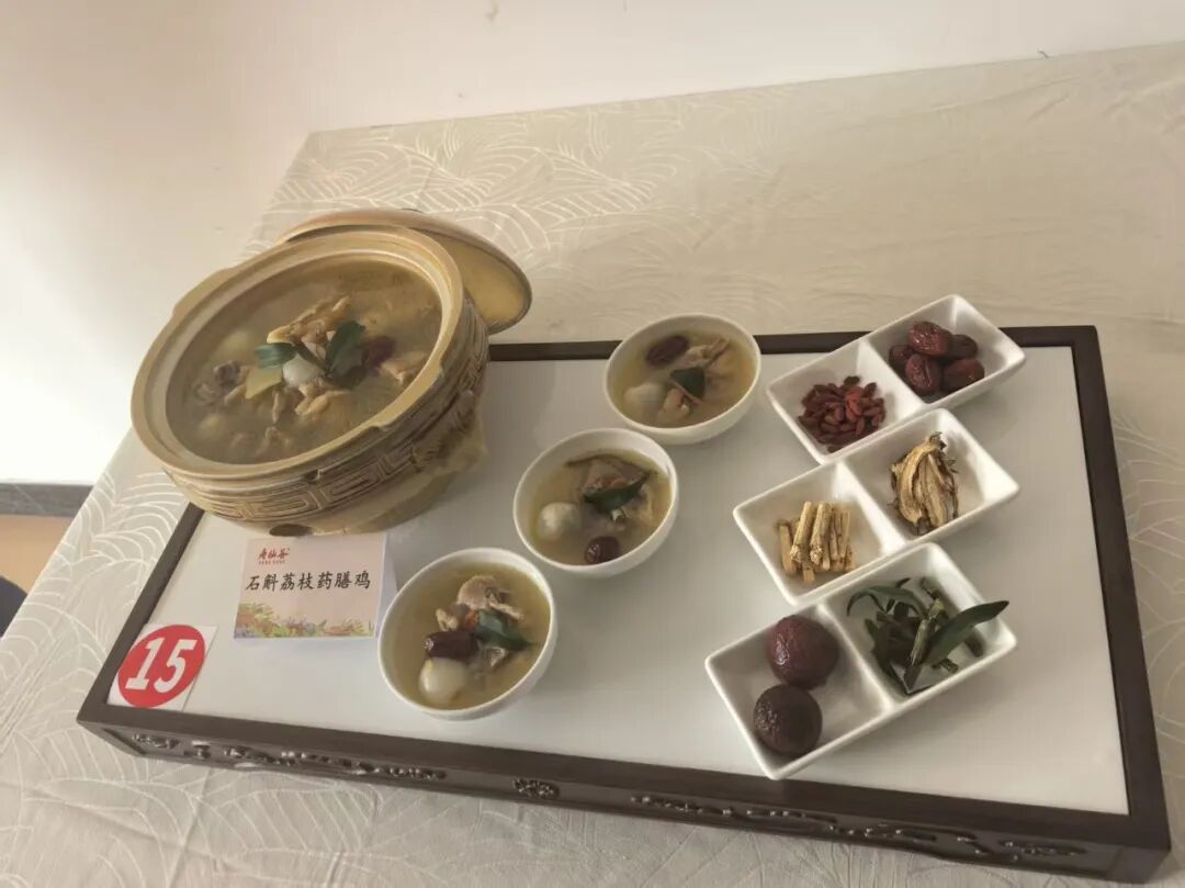 药膳以武义土鸡为主料,配合鲜荔枝,加入铁皮石斛、当归、党参、红枣、枸杞等中药材小火慢炖,其汤色澄澈透亮、肉质软烂、鲜味浓郁,具有增强免疫力、安神助眠作用。