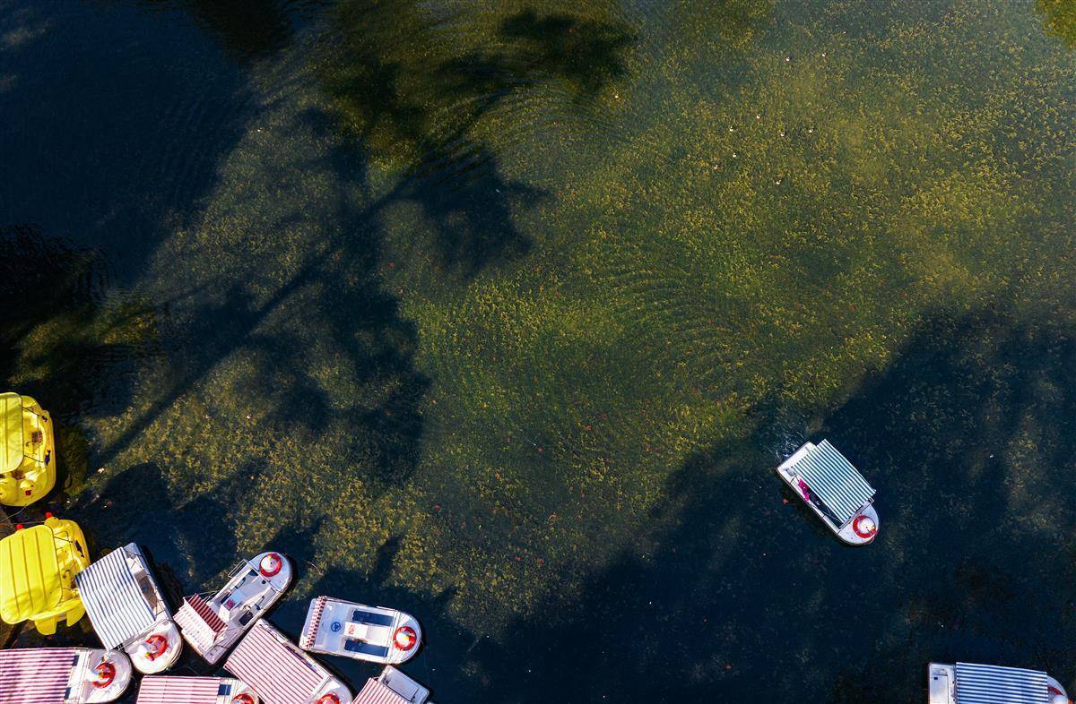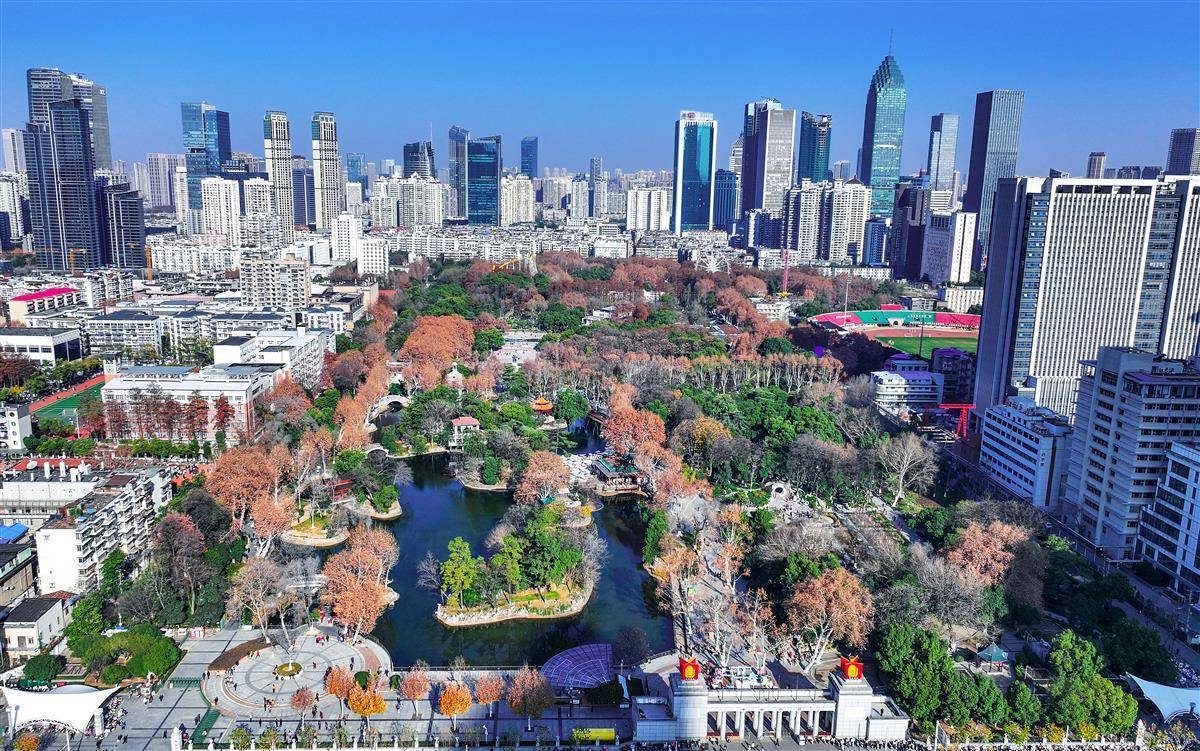 1月9日通配资,鸟瞰武汉中山公园里的游船。